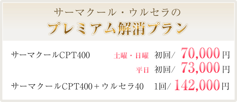 | サーマクールCPT400 | (土曜・日曜) 70,000円 (平日) 73,000円 |