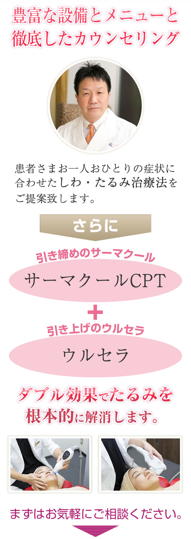 サーマクール+ウルセラより長い効果を求める方に、切らずに注射や糸による治療でもたるみ解消・リフトアップが可能です。