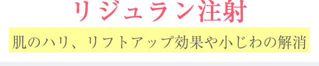 ポリヌクレオチドが主成分の「リジュラン注射」は、肌の弾力、ハリを回復させる製剤です。皮膚真皮層へ注射することで、肌再生力が高まります。